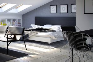 Visualisation of the modern, gray apartment. Interior of multi-family residential unit. Location of investment – [...]